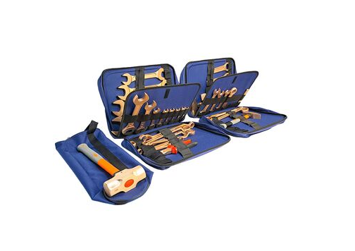 Комплект искробезопасных инструментов из сплава бериллиевой бронзы BeCu (32 предмета) КИБОС-32 предназначен для выполнения монтажных или слесарных работ в зонах повышенной взрывоопасности или возможного воспламенения искр, возникающих в процессе использования инструмента.